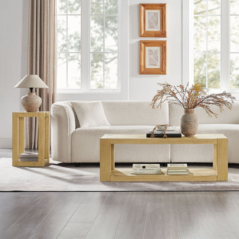 Modern 2 tier Rectangle Coffee Table Set for Living Room,Easy Assembly Coffee Tables, End Side Tables for Bedroom Office,Natural Color