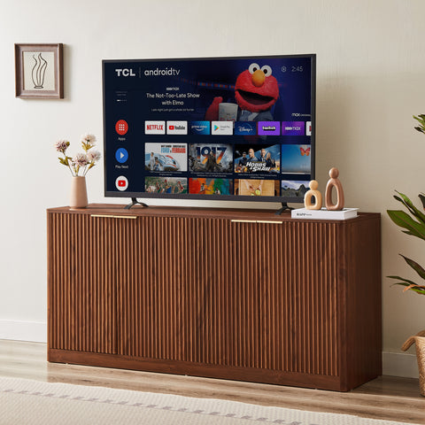 59"W Modern Wavy Sideboard, Curved Contour Design Storage Cabinet, 4-Door Cabinet with Storage Function, Suitable for Kitchen/Bedroom/Living Room, Walnut