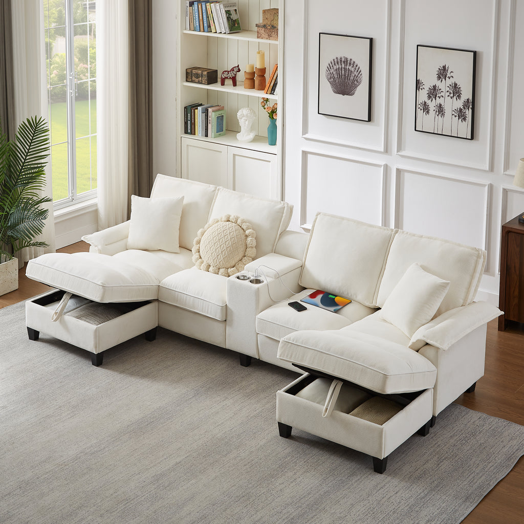 The storage chaises are a game-changer for hiding blankets and pillows. So soft and the U-shape is perfect for our movie nights.