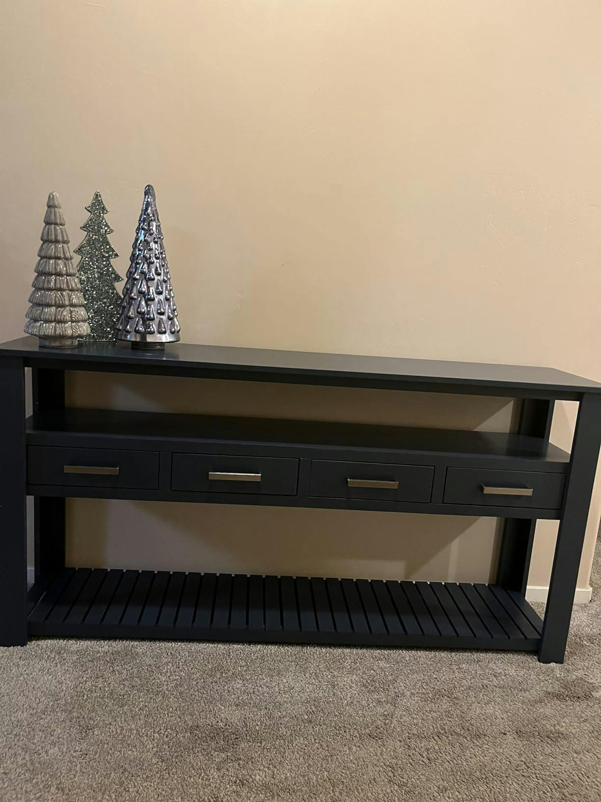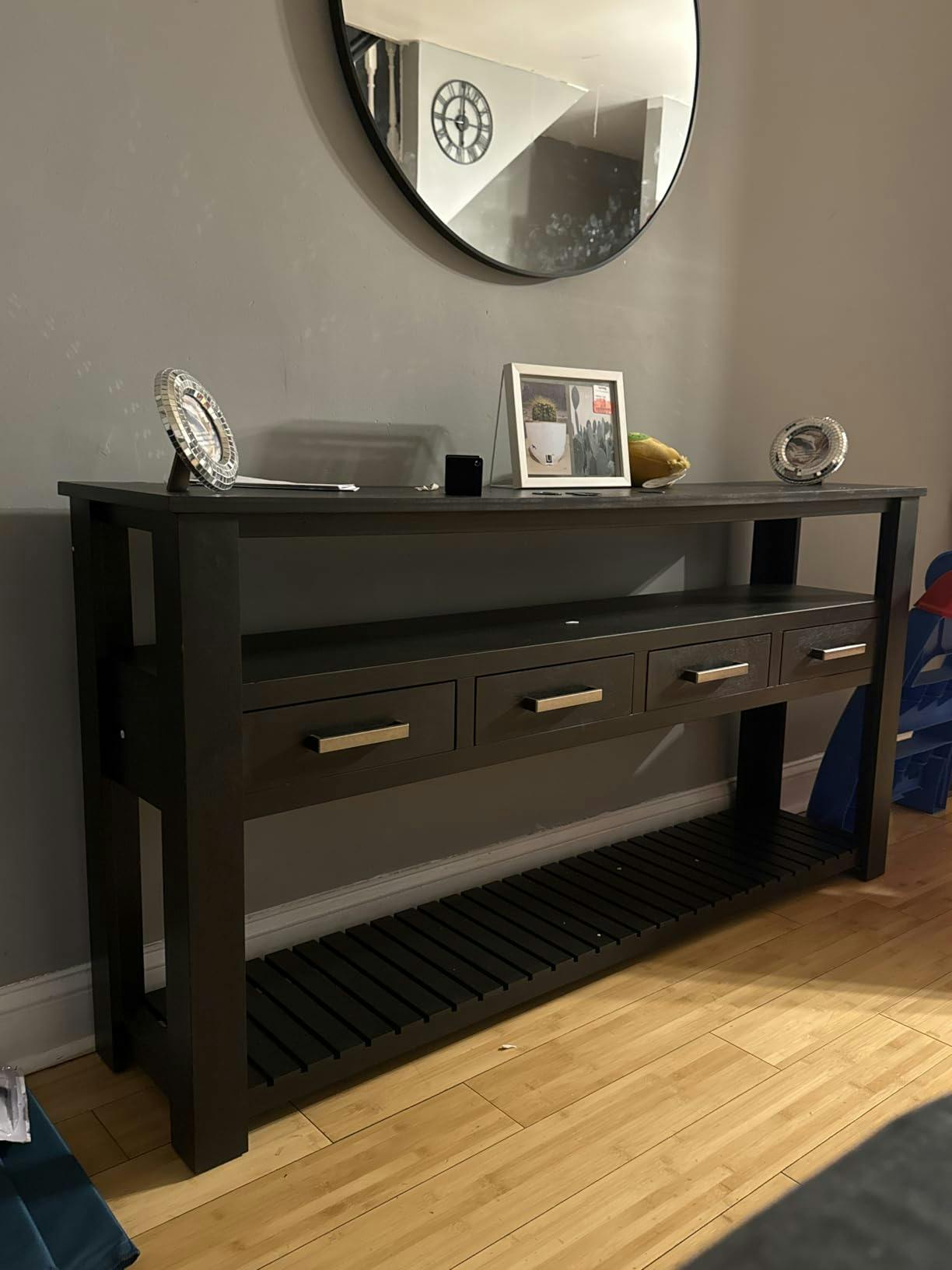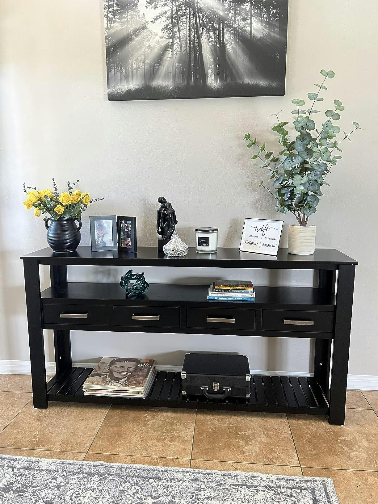 - [Four-Drawer Storage]:Designed with four spacious drawers, this entryway table offers practical storage for organizing everyday essentials. It’s perfect for keeping tableware set, wallets, towel.