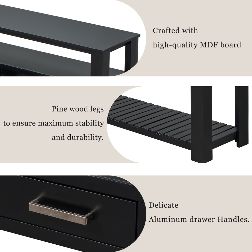 - [Metal Handle]:This sofa table features four stylish metal handles for durability and a modern look. Sturdy handle ensures drawers pull out smoothly.