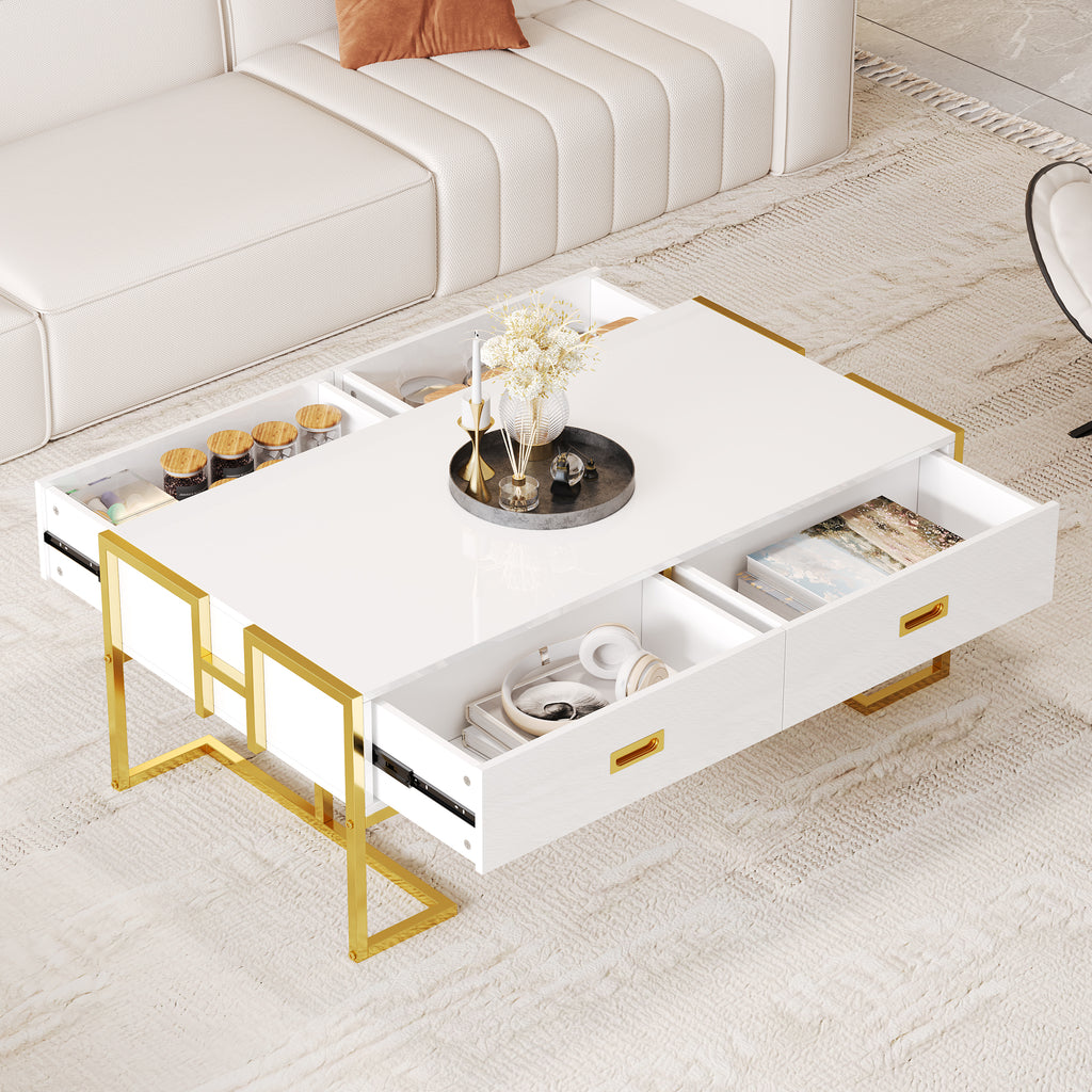 - Sleek Design: The clean, rectangular shape with a white finish and gold base adds a touch of luxury and sophistication to contemporary living rooms.