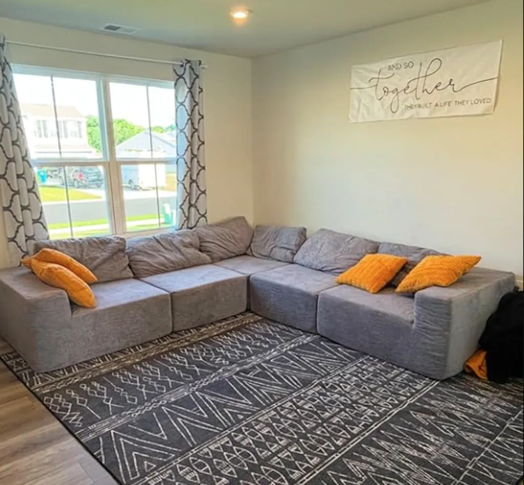 This convertible sofa brings extra sleeping space and charming style to your living room. With wider arms and backrests, it can accommodate a very large number of guests and converts into a variety of shapes, perfect for sleepovers. Wrapped in soft, skin-friendly terrycloth fabric upholstery, this sofa is completely foam-filled, and the seat cushions are foam-filled and spring-supported to help prevent the sofa from sagging over time. This upholstered sofa features square armrests. There is no wood frame construction, no assembly required, and it is very friendly to elderly children.