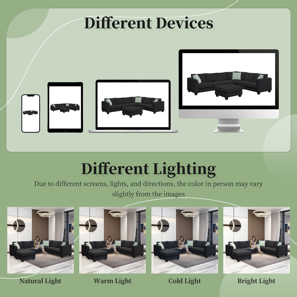 - Spacious Furniture: Metal + Manufactured Wood frame, 100% polyester fabric, filled with high-density sponge, making this sectional sofa beautiful and comfort, it can be perfectly matched with your apartment, house or conference room. With ottoman couch set that can be placed on the both side of the sofa couch that to create a left (right) facing chaise lounge you need for your limited spaces but large sofa couch needs. The sectional sofa fits into any interior and hugs your friends with a cozy,