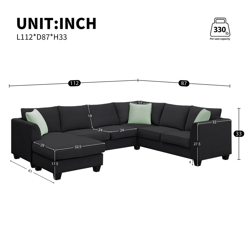 - Notes & Dimensions: This product is shipped in 3 packages with overall dimensions: 112.5''W x 87.5''D x 33.5''H; Ottoman size: 29"W x32"D x 18"H; Weight Capacity: 330lbs/seat. This sofa will be shipped from the US in a total of 3 packs, please wait with patience to get all.
