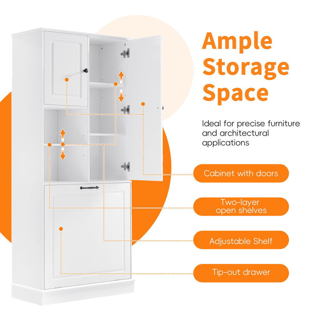 - Versatile Storage Solution – Includes a large flip-out basket, two enclosed cabinets, and an open storage space, ideal for organizing towels, bath essentials, books, and more.