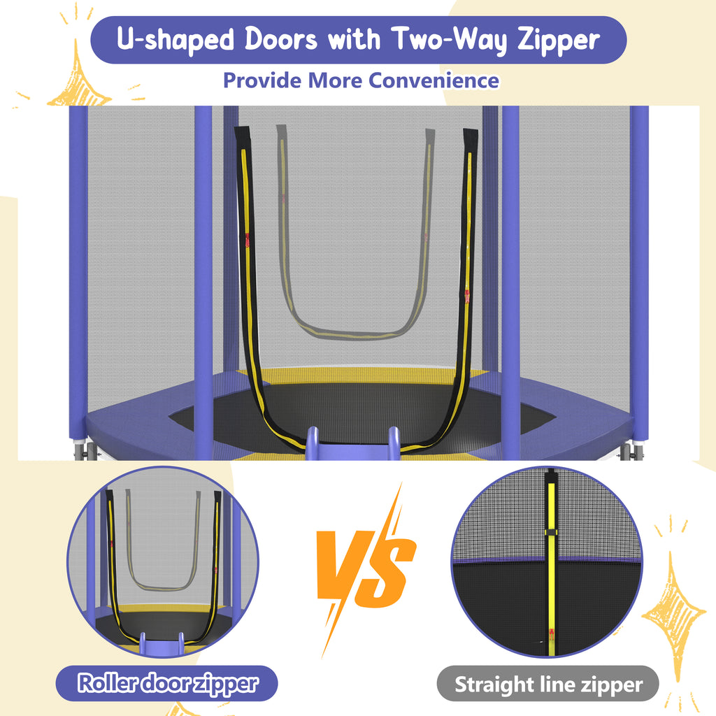 - [Safety First] Everything about this trampoline configuration is not only about the fun of playing, but more importantly, it is based on safety considerations. The U-shaped steel frame provides a solid base structure, while the safety pad and high zippered enclosure provide comprehensive protection. The molded slide is smooth enough, and a soft pad for free is used to catch children who slide down happily.