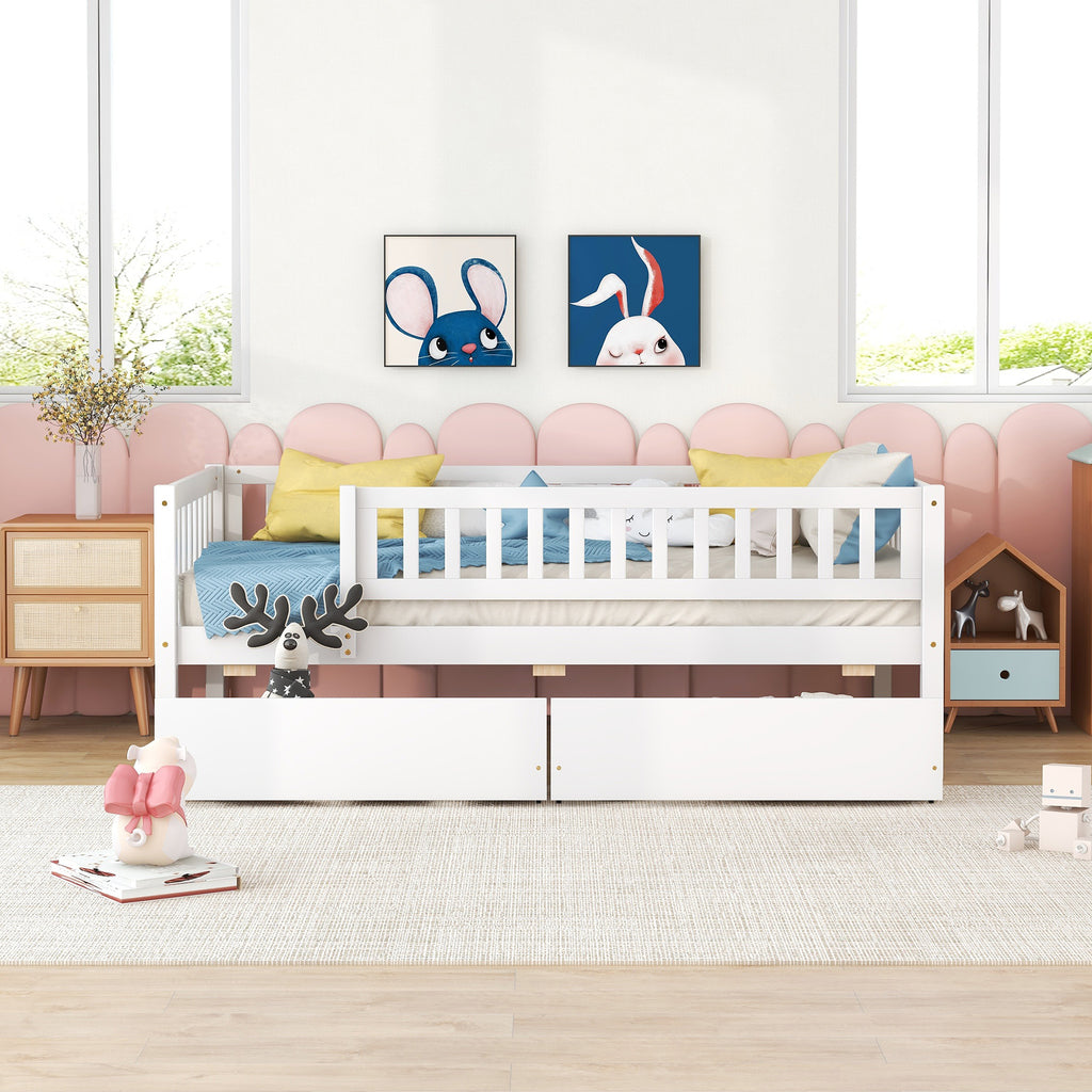 Our dual-use daybed frame can be used as a sofa or a bed. It is a great choice for you. The frame is made of high-quality pine wood, ensuring it is strong and durable. This full-size daybed comes with two drawers that are easy to pull in and out, making it an ideal multifunctional furniture for small living spaces. This versatile furniture combines style, comfort and practicality, making it a perfect addition to any home. Come and transform your living space with this wooden daybed.