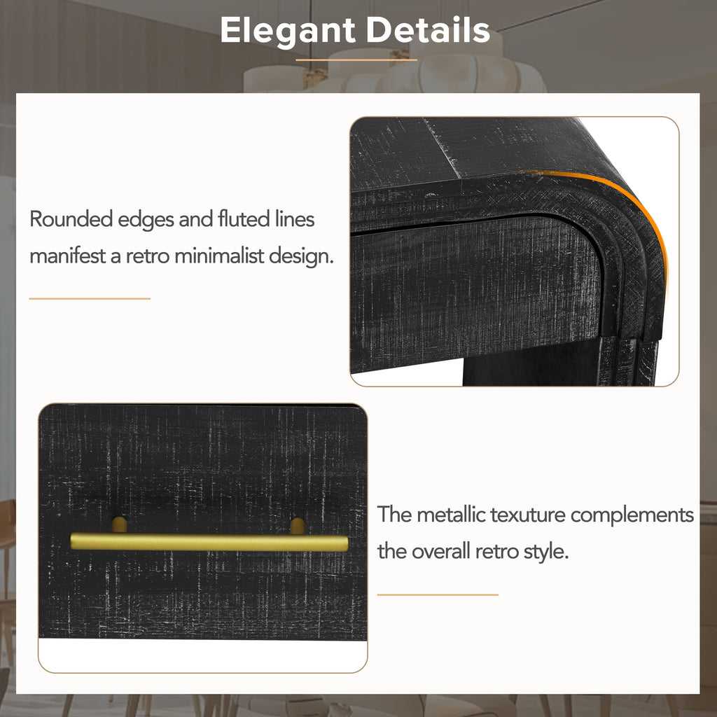 - Elegant Details: The console table can be proof that a minimalist design can be anything but boring with its striking details, like its rounded edges and fluted details. The metal handle is both functional and decorative, and its metallic texture complements the overall retro style. Its distressed finish adds a textural touch to any retro interior, allowing it to always match your decor no matter how often you like switching things around.