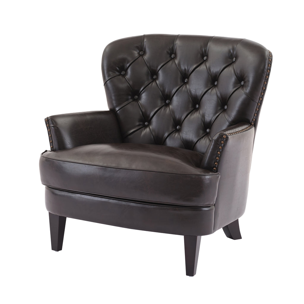 Bring timeless elegance to your living space with our Vintage Tufted Upholstered Armchair. This classic wingback armchair combines retro charm with modern comfort, featuring a sturdy plywood frame, plush foam cushioning, and a luxurious faux leather/polyester blend upholstery. Adorned with sleek nailhead trim and finished with rich wooden legs, this chair effortlessly elevates any room’s aesthetic. Designed for versatility, it seamlessly fits into living rooms, bedrooms, home offices, or reading nooks. With a weight capacity of 220 lbs, it promises durability and reliability for everyday use. Whether you’re curling up with a book, working from home, or entertaining guests, this chair offers a stylish and supportive seating solution.